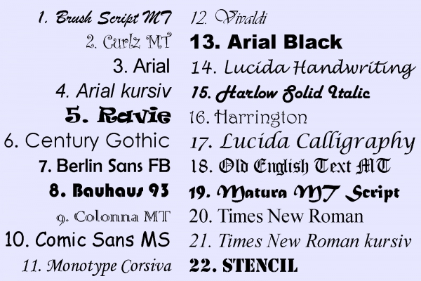 Wir benötigen folgende Informationen von Ihnen: -gewünschte Schriftart -den zu gravierenden Text -ein gewünschtes Logo (wie z.B. Nr. 10)