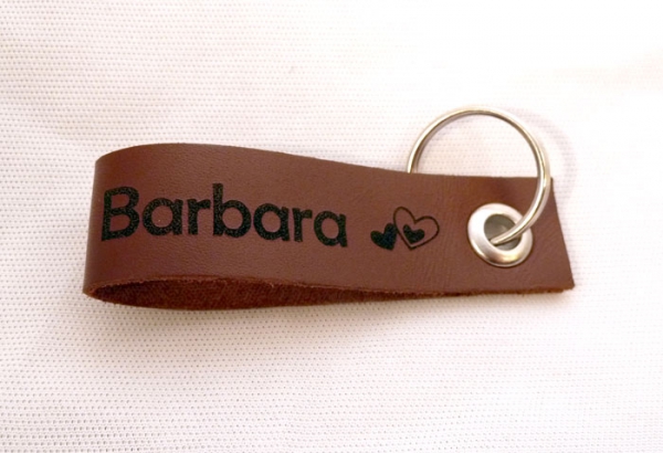 Der Schlüsselanhänger bestehen aus 100% echtem Leder und die Gravur wird mit einem Laser eingebrannt.